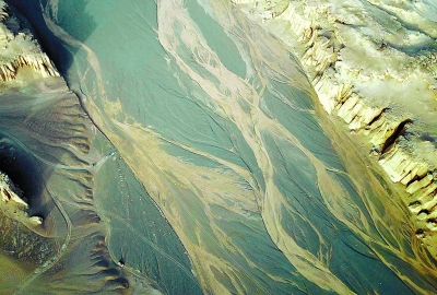 俯瞰大海道,亿万年来洪水冲积形成的河道正是丝绸之路曾经的交通要道。