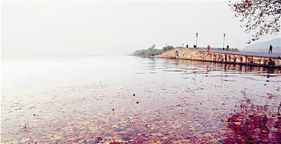 昨天中午,记者从西湖水域管理处得到一个好消息——今天(23日)起,在断桥开辟湖面落叶观赏区。