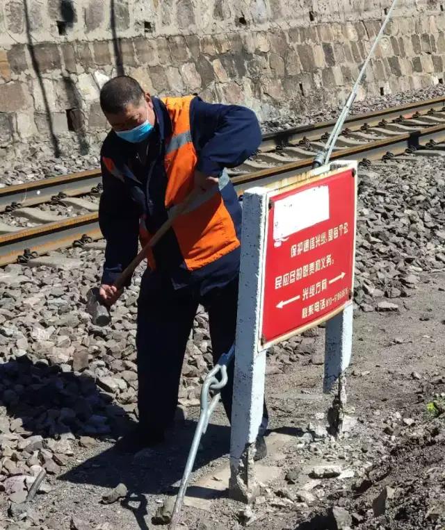 进入汛期,北京通信段全力组织人员积极开展铁路沿线光电缆标桩和警示牌整治工作。为通信光电缆安全查危堵漏,确保通信设备安全度汛。 初夏的正午,该段北京北车间三家店作业队雁翅工区一行8人,扛着作业工工具和器材沿着崎岖的小路,走向丰沙线的第三个作业点——安雁区间作业点。 到达作业现场后,现场防护员与驻站防护员进行联系,确认无列车经过后组织人员上线作业。 “咚~咚~咚........"10公斤的铁锤,锤向警示牌水泥柱子,相击迸发出刺耳的声音。这块儿警示牌经过,风吹、雨打、日晒、风化已经老旧和破损需要拆除后重新更换。 光电缆承载着行车半自动闭塞线路,车站调度、车机联控、车载信号、行车系统等重要业务。一旦损坏导致信号中断,对铁路运输的影响不堪设想。标桩、警示牌就像一个“卫士”,时刻提示着“此处地下有光缆”,不允许私自动土施工,需要重新精确探测光电缆径路。技术能手—王亚棋将光缆测试仪紧贴地面慢慢来回移动,眼睛时刻注视着仪表盘面上波形的变化,耳朵仔细辨别着蜂鸣声的大小,每一步都精准到位,努力寻找信号最强、蜂鸣声最大的地点。 光缆位置找到了,接下来的“挖标桩坑儿”是纯力气活。杨士文、杨义广两位师傅抡起洋镐和铁锨铆足了劲儿。一镐头砸下去,其他人也身手敏捷的紧跟其后,一锹一锹地铲。30分钟后直径0.8米、深0.8米的圆柱形“坑儿”挖好了,细密的汗水也布满了他们的额头。 警示牌的组装需要大家齐心协力,扶正、装接、上螺丝,很快一个净高1.8米、重30斤的警示牌组装完毕。刚刚安装完毕,现场防护员吹响了防护喇叭,工长立即组织人员下道避让,同时拉起了防护警戒线,随后一辆列车呼啸而过。为了在汛期前做好设备整治工作,北京北车间三家店作业队,每天天不亮就出门,他们带上干粮和桶装水,一干便是一整天,在20天内完成了,对747个标桩、346个警示牌的巡视整治工作。他们同时还负责管内32个通信机房、59个无线中继器机房以及61个区间通话柱和467个无线漏缆杆的维护工作。 初夏的丰沙线生机盎然,三家店作业队用自己的坚守和汗水,为铁路通信畅通,贡献着自己的一份力量。(通讯员 于锁 王洋 董文雪)