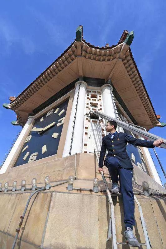 北京站塔钟,因其特殊的地理位置,备受世人关注。“一秒不差”是历代北京站塔钟守钟人孜孜不倦的追求。一曲《东方红》历久弥新,下面我们为大家揭开北京站塔钟神秘的面纱。 北京站塔钟1959年建成,在1993年和2008年经历2次大修改造。 塔钟系统为带有监控报警和闭环控制的主从子母钟系统,系统主要由主控室内一级母钟系统、塔楼内二级母钟系统、四面子钟系统、塔钟播报时系统组成。 工作时主控室内一级母钟为主母钟,对东西塔内二级母钟进行授时校正和调控。同时随时接受卫星GPS标准时间信号进行自动校正,使整个系统与标准时间同步,无积累误差。二级母钟与四面子钟构成一套独立的闭环控制的子母钟系统,作为主控室内一级母钟的子系统,工作接受一级母钟的授时校正、监控和调控,并随时向一级母钟反馈运行信息。东西塔楼上四面子钟钟面刻度即指针均采用内置LED发光管,自发光照明。塔钟播报时系统由一级母钟控制。 北京通信段北京站通信工区负责塔钟的维护工作。 北京通信段北京站通信工区负责塔钟的维护工作。 北京站塔钟是北京市地标性建筑,是北京站的窗口设备,因此,工区将其列为首要重点设备进行维护。基本维护工作主要有每天巡视检查,月度检修,季度检修,年度检修。每天指定专人全天值守。特别是在元旦、春节、五一、十一等出行客流较大时期,暑运和两会等特殊时期以及雷雨、大风、强降雪等恶劣天气时期,他们都会派技术骨干加强值守,确保塔钟和机房设备运行的安全、准确。 北京通信段北京站通信工区工长张兵,从事维护大钟设备工作以来,始终牢记师傅的叮嘱,每天上班时都会对大钟设备的运行情况进行细微周全的检查,像对待自己孩子一样呵护着它,用心去倾听它“嘀嗒”的声音。 张兵:“咱们铁路职工的责任就是要保证旅客安全正点地到达目的地,所以我们必须付出更多的精力和时间,确保铁路通信设备正常运行。北京站大钟是北京站的标志,也是首都北京的标志之一,无论是匆忙的过客还是附近的居民,路过这里,都会习惯性地抬头看看这个大钟,所以我们必须确保大钟一秒不差。”