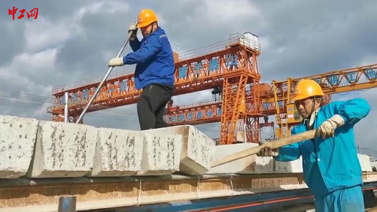 近日,在中老铁路国内云南玉(溪)至边境口岸磨(憨)段,中铁一局玉溪研和铺架基地,工人们在工期、任务重、质量要求高的情况下,在轨排生产线上把锚固好的混凝土枕进行翻正作业,装车运往前方工地,确保前方的铺架施工。