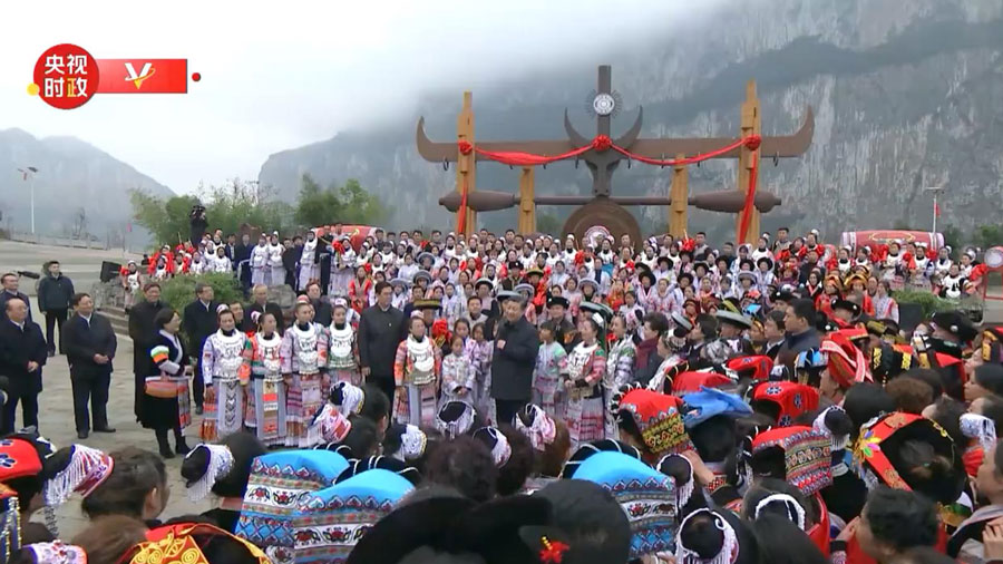 2月3日下午,习近平总书记来到贵州毕节市黔西县新仁苗族乡化屋村考察调研。在村文化广场上,少数民族群众载歌载舞,欢度春节。[详细]