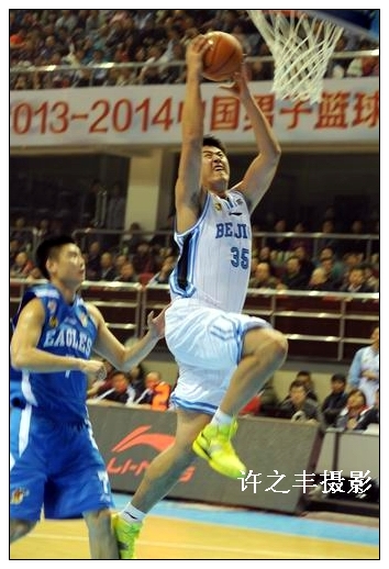 2013年11月15日晚,CBA常规赛第三轮北京队主场以108比88大胜青岛队,迎来三连胜,同时也是新赛季首个主场胜利,而青岛队则是三连败。北京队马布里砍下15分5助攻4篮板,莫里斯贡献了29分10篮板的两双,而孙悦4次封盖创造了生涯新高。CBA第三轮战报: 四川 114:123 佛山; 辽宁 96:111 广东; 福建 136:99 山西; 北京 108:88 青岛; 新疆 108:61 上海; 吉林 82:85 东莞; 浙江 115:91 八一; 江苏 98:87 天津; 山东 111:100 广厦。图为北京队主场以108比88大胜青岛队。工人日报-中工网记者许之丰摄影报道