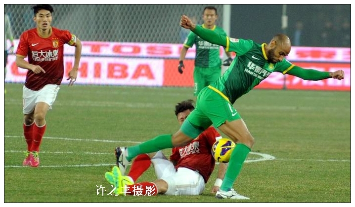 2013年11月23日晚,2013中国足协杯半决赛北京国安主场对广州恒大的首回合比赛,比赛中双方激烈对峙,开场不久张稀哲突破摔倒在恒大禁区内,裁判近在咫尺没有理会,张稀哲此后受伤退赛。第80分钟,埃尔克森助攻穆里奇打入制胜球,最终恒大客场1比0战胜国安,这是恒大升入中超3年来首度在工体获胜。11月27日,双方将在广州进行第二回合较量。恒大队毕竟是亚洲俱乐部冠军。里皮毕竟是世界杯冠军教头,也是集欧冠、亚冠等各种冠军于一身。工人日报-中工网记者许之丰摄影报道