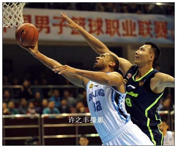 2013年11月29日晚,2013-2014赛季CBA联赛第八轮比赛在首钢体育馆进行,客场作战的卫冕冠军广东队以94比92艰难战胜缺少马布里的北京队,取得八连胜的同时,终结了自己在联赛中614天不胜北京队的尴尬纪录,而北京队遭遇本赛季主场首败。本场比赛北京队莫里斯砍下34分16篮板6助攻,李根26分6篮板3助攻,翟晓川12分5篮板,朱彦西9分,孙悦7分6篮板3助攻。广东队6人得分上双,怀艾特28分6篮板5助攻,易建联15分10篮板4盖帽,王仕鹏14分,鲍威尔12分6篮板,朱芳雨11分,刘晓宇10分。工人日报-中工网记者许之丰摄影报道