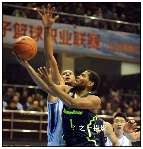 2013年11月29日晚,2013-2014赛季CBA联赛第八轮比赛在首钢体育馆进行,客场作战的卫冕冠军广东队以94比92艰难战胜缺少马布里的北京队,取得八连胜的同时,终结了自己在联赛中614天不胜北京队的尴尬纪录,而北京队遭遇本赛季主场首败。本场比赛北京队莫里斯砍下34分16篮板6助攻,李根26分6篮板3助攻,翟晓川12分5篮板,朱彦西9分,孙悦7分6篮板3助攻。广东队6人得分上双,怀艾特28分6篮板5助攻,易建联15分10篮板4盖帽,王仕鹏14分,鲍威尔12分6篮板,朱芳雨11分,刘晓宇10分。工人日报-中工网记者许之丰摄影报道