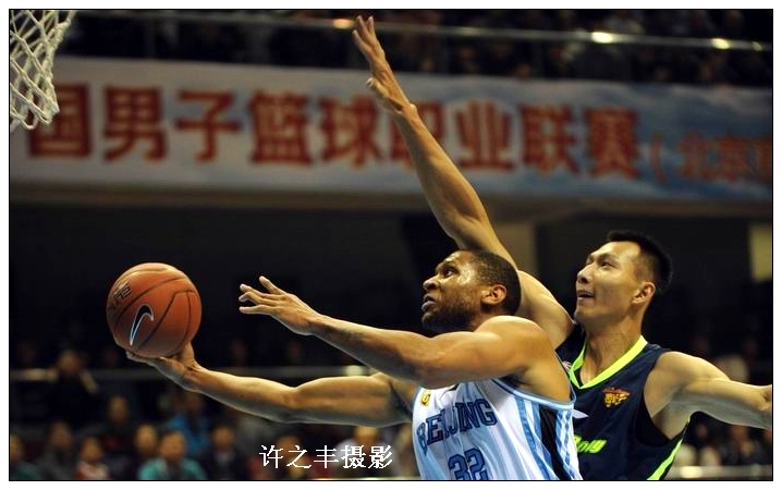 2013年11月29日晚,2013-2014赛季CBA联赛第八轮比赛在首钢体育馆进行,客场作战的卫冕冠军广东队以94比92艰难战胜缺少马布里的北京队,取得八连胜的同时,终结了自己在联赛中614天不胜北京队的尴尬纪录,而北京队遭遇本赛季主场首败。本场比赛北京队莫里斯砍下34分16篮板6助攻,李根26分6篮板3助攻,翟晓川12分5篮板,朱彦西9分,孙悦7分6篮板3助攻。广东队6人得分上双,怀艾特28分6篮板5助攻,易建联15分10篮板4盖帽,王仕鹏14分,鲍威尔12分6篮板,朱芳雨11分,刘晓宇10分。工人日报-中工网记者许之丰摄影报道