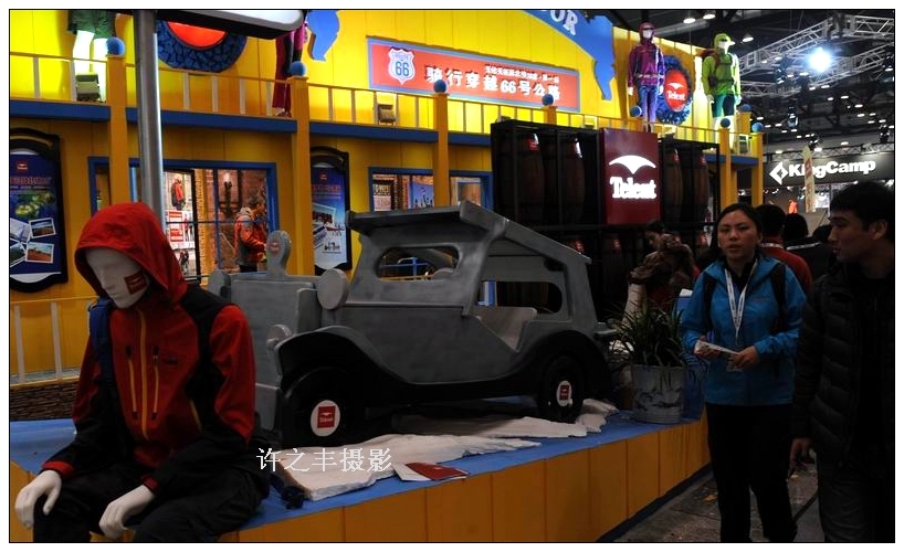 北人户外文化产业园是全国唯一以户外为主题的文化产业园,汇聚了大批国内外优秀户外装备生产厂家及代理商,是集展示、培训、体验、销售、办公于一体的户外资源平台。商家在此获得更多的客户资源,用户能充分体验一站式服务,预计2014年6月开园,届时将成为北京户外行业的新亮点。图为来自全球的近600个高端的户外运动用品齐聚国家会议中心带来全新的惊喜。工人日报-中工网记者许之丰摄影报道