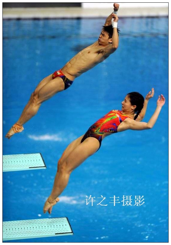 2015年3月14日,国际泳联世界跳水系列赛北京站在水立方进行。在首次亮相国际舞台的男女混合双人三米跳板决赛备受关注,最终中国组合何姿/陈艾森以330.00分力压加拿大、墨西哥组合勇夺金牌。工人日报-中工网记者许之丰摄影报道