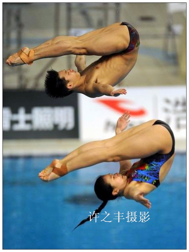 2015年3月14日,国际泳联世界跳水系列赛北京站在水立方进行。在首次亮相国际舞台的男女混合双人三米跳板决赛备受关注,最终中国组合何姿/陈艾森以330.00分力压加拿大、墨西哥组合勇夺金牌。工人日报-中工网记者许之丰摄影报道