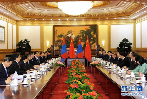 新华社10月25日电 10月25日,中国国务院总理李克强在北京人民大会堂同蒙古国总理阿勒坦呼亚格举行会谈。 新华社记者饶爱民摄