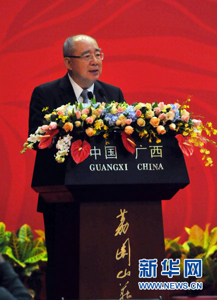 10月26日,中国国民党荣誉主席吴伯雄在开幕式上致辞。当日,第九届两岸经贸文化论坛在广西南宁开幕。 新华社记者陈晔华摄