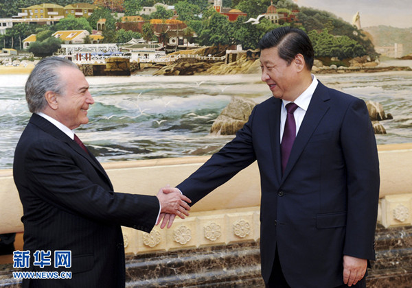 特梅尔表示,中国是伟大的国家。巴方对巴中战略伙伴关系的良好发展感到高兴,祝愿中国发展取得更大成功。巴方愿同中方加强高层往来,发挥巴中高委会机制作用,推进各领域合作。巴方愿同中方在金砖国家框架内加强沟通与合作,推动全球治理,携手促进拉中关系发展。