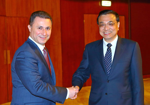 11月26日,中国国务院总理李克强在布加勒斯特会见马其顿总理格鲁埃夫斯基。新华社记者 龚兵 摄