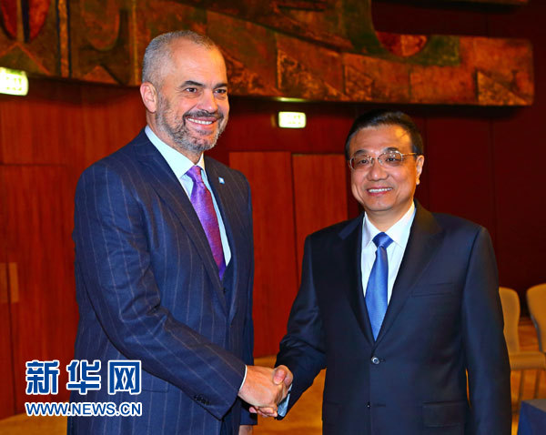 11月27日,中国国务院总理李克强在布加勒斯特会见阿尔巴尼亚总理拉马。新华社记者 龚兵 摄