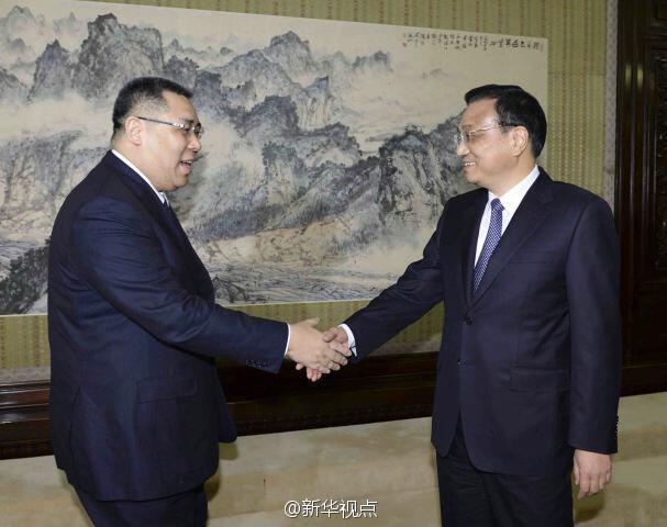 李克强在中南海紫光阁会见澳门特别行政区行政长官崔世安