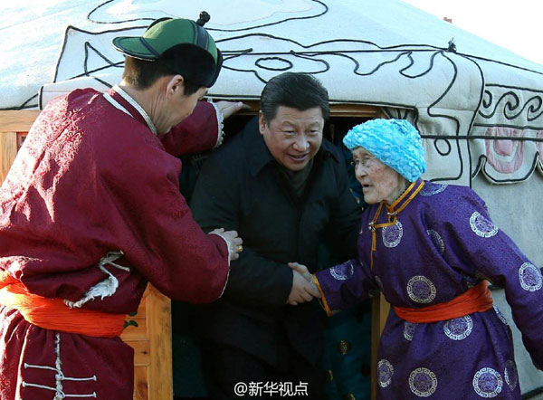习近平看望81岁老牧民 用蒙语“巴雅斯太”说再见