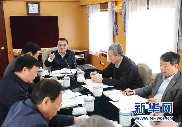1月26日,中共中央政治局常委、国务院总理李克强在赴陕西商洛、安康看望慰问困难群众的火车上,专门召开会议,听取扶贫状况,商议脱贫良策,部署进一步做好扶贫开发工作。 新华社记者 李涛 摄