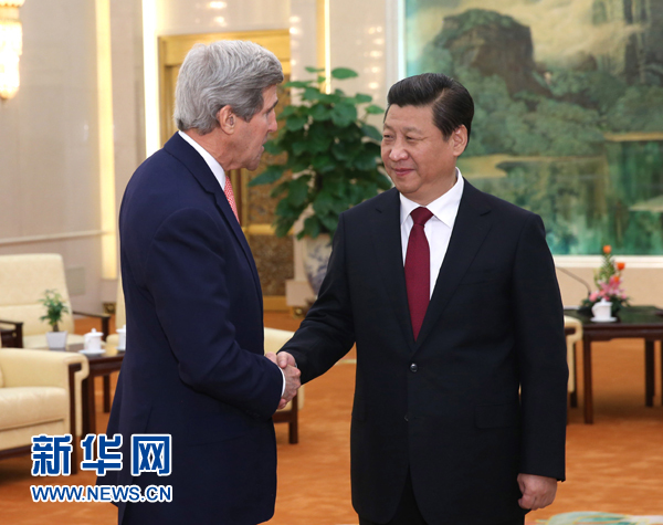 2月14日,国家主席习近平在北京人民大会堂会见美国国务卿克里。新华社记者 庞兴雷 摄