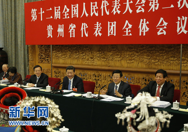 3月7日,中共中央总书记、国家主席、中央军委主席习近平参加十二届全国人大二次会议贵州代表团的审议。 新华社记者鞠鹏摄