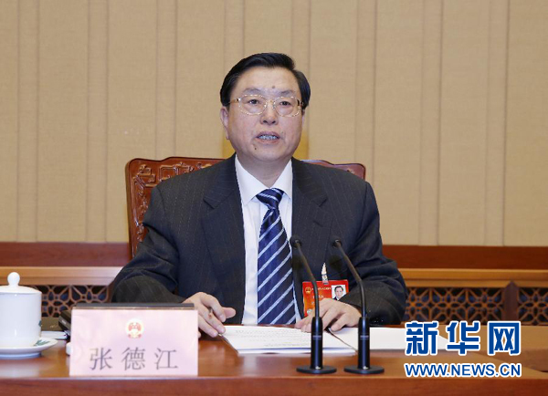 3月12日,十二届全国人大二次会议主席团在北京人民大会堂举行第四次会议。主席团常务主席张德江主持会议。 新华社记者 鞠鹏 摄