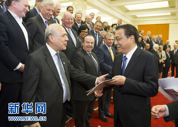 美国卡特彼勒公司董事长欧博赫曼、澳大利亚力拓集团首席执行官威尔士、美国联邦快递公司董事会主席施伟德、美国杜邦公司董事长柯爱伦、法国欧莱雅集团董事长安巩、美国陶氏化学公司董事长利伟诚、法国道达尔集团董事会主席马哲睿等分别就创新驱动经济、物流业发展、知识产权保护、提高能效、外企在华投资经营环境等提问。李克强一一作答。