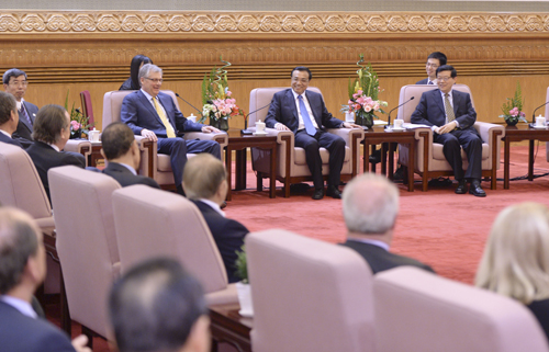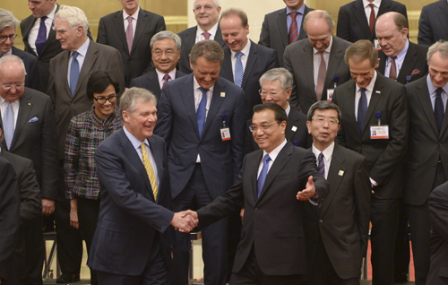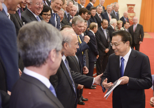 25日,李克强总理在人民大会堂与出席中国发展高层论坛2014年会的54名境外代表座谈,其中既有来自世界500强企业的董事长,也有美国总统经济顾问委员会前主席、哈佛大学等顶级专家、教授。座谈会上,外方代表踊跃提问,李克强一一坦率作答。他说:“外国企业为中国带来了先进的理念、先进的技术。中外企业的平等竞争,事实上也促进了中国企业的健康成长。”