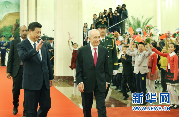 4月8日,国家主席习近平在北京人民大会堂同以色列总统佩雷斯举行会谈。这是会谈前,习近平在人民大会堂为佩雷斯举行欢迎仪式。 新华社记者姚大伟 摄