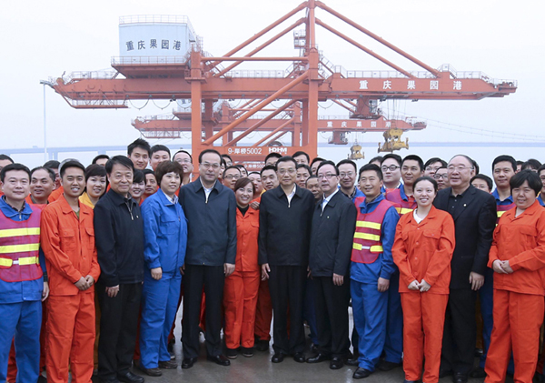 果园港是我国规划建设中最大的内河水、铁、公路联运港。李克强在这里听取长江上游航运中心规划介绍,了解港口集疏运和今年吞吐情况,勉励他们在长江港口中起标杆带头作用。他说,要把港口、物流、产业有机结合起来,打造大交通格局,使“黄金水道”货畅其运、人畅其流。