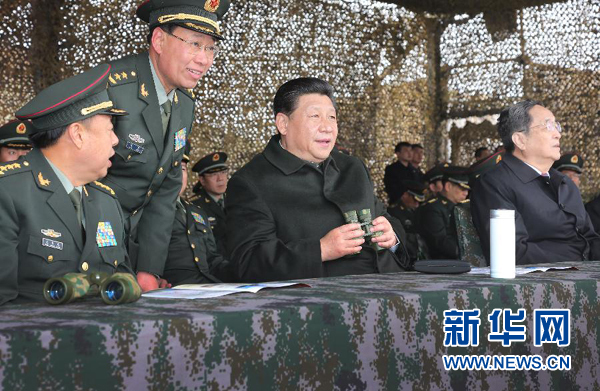 习近平高度重视部队实战化训练。29日下午,习近平冒着霏霏细雨,来到位于乌鲁木齐市郊的新疆军区综合训练场,观摩部分火器实弹射击、特战分队反恐行动等实战化训练课目演示。训练场上硝烟弥漫、炮声隆隆,反坦克导弹、自行突击炮、武装直升机一轮轮火力打击精确覆盖目标。特战分队官兵滑降突入、精确狙击,多路突进、合围清剿,迅即捣毁“恐怖营地”。习近平不时拿起望远镜仔细察看,详细询问有关情况,对部队展示出的过硬素质和反恐技能给予肯定。