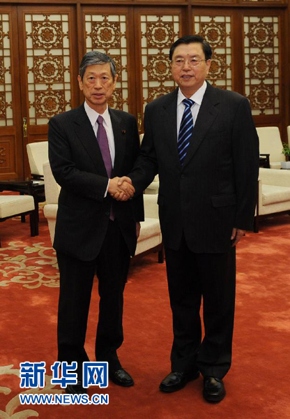 5月5日,全国人大常委会委员长张德江在北京人民大会堂会见以高村正彦会长为团长的日本日中友好议员联盟代表团。 新华社记者饶爱民摄