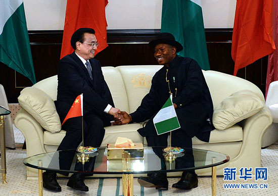 李克强同尼日利亚总统乔纳森举行会谈时强调