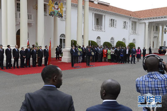 5月10日,中国国务院总理李克强在肯尼亚国家宫与肯总统肯雅塔举行会谈后共同会见记者。 新华社记者 李学仁 摄