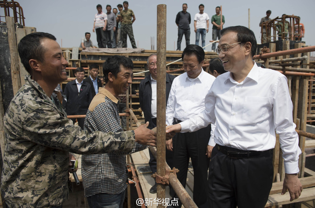【李克强:农民工是城市建设的双功臣】22日,在赤峰污水处理项目工地,李克强走上脚手架与农民工交谈。他说,你们为城市地上工程贡献了力量,现在又做地下工程,为长久发展打基础,你们是城市建设的双功臣。城市地下设施历史欠账多,未来要做更多地下工程,你们把这方面的技术学好,将来会有更多活干!(来源:新华视点微博)