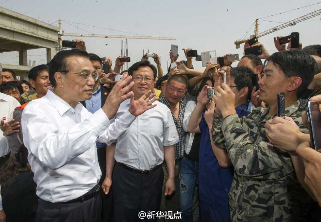 李克强在赤峰考察:走上脚手架与农民工交谈