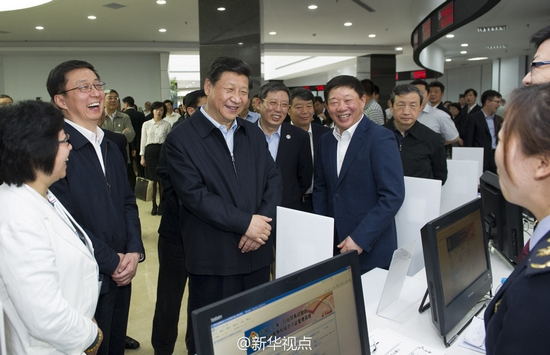 新华社北京5月23日电 据新华社“新华视点”微博报道,习近平23日来到中国(上海)自由贸易试验区外高桥综合服务大厅。在检验检疫窗口,工作人员递上以漫画方式阐释政策的小册子,总书记仔细翻看。“我们还建立了微信服务平台,期待您也予以关注。”听到这话,大家都笑了。总书记笑着说:“你们动了脑筋啊。”