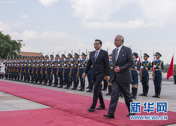 会谈前,李克强在人民大会堂东门外广场为纳吉布举行欢迎仪式。全国政协副主席李海峰出席。