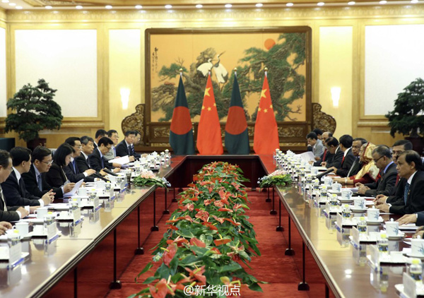 新华社北京6月9日电 据新华社“新华视点”微博报道,9日下午,国务院总理李克强在人民大会堂东门外广场举行仪式,欢迎来华进行正式访问的孟加拉国总理谢赫·哈西娜。