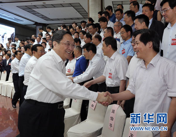 6月17日,中国经济社会理事会四届一次会议在北京举行。中共中央政治局常委、全国政协主席俞正声会见与会代表并讲话。 新华社记者 丁林 摄
