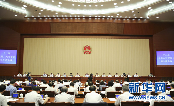 6月23日,十二届全国人大常委会第九次会议在北京人民大会堂开幕。张德江委员长主持会议。 新华社记者 丁林 摄