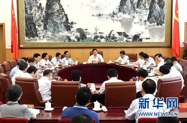 7月5日,中共中央政治局常委、中央党的群众路线教育实践活动领导小组组长刘云山在北京主持召开中央党的群众路线教育实践活动领导小组会议。新华社记者 刘建生 摄