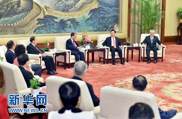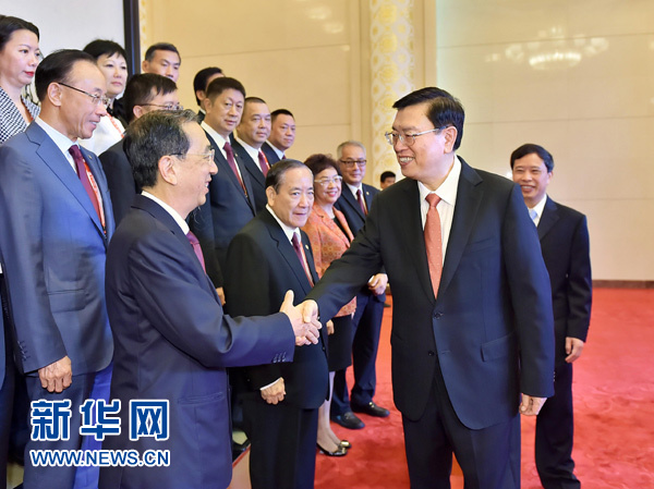 新华社北京7月29日电(记者查文晔)中共中央政治局常委、全国人大常委会委员长张德江29日上午在人民大会堂会见了以马有礼会长为团长的澳门中华总商会访京团全体成员。