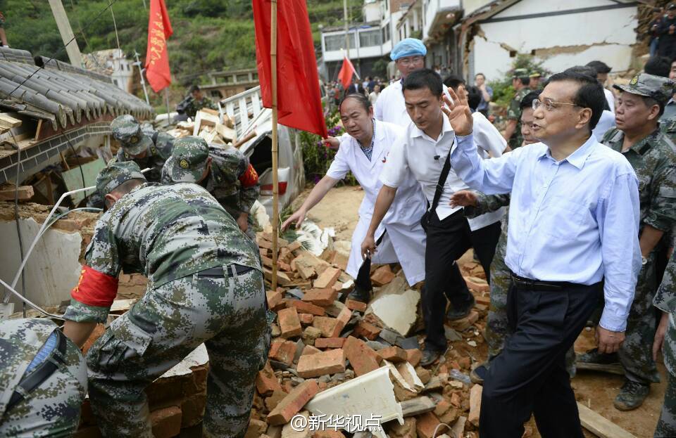 新华社北京8月4日电 据新华社“新华视点”微博报道,4日下午,李克强来到云南鲁甸地震受灾最为严重的龙头山镇龙泉村,察看地震搜救现场。他对正在紧张搜救的官兵说,我来看望大家,但你们不要停下手里的活,现在的每一分每一秒都异常宝贵,希望大家紧紧抓住黄金救援时间,不放弃任何一线希望。