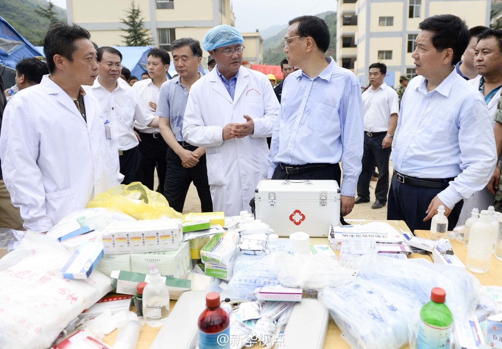 新华社北京8月4日电 据新华社“新华视点”微博报道,4日下午,李克强来到云南鲁甸地震震中龙头山镇的医疗救助点,看望受伤正在接受救治的群众。