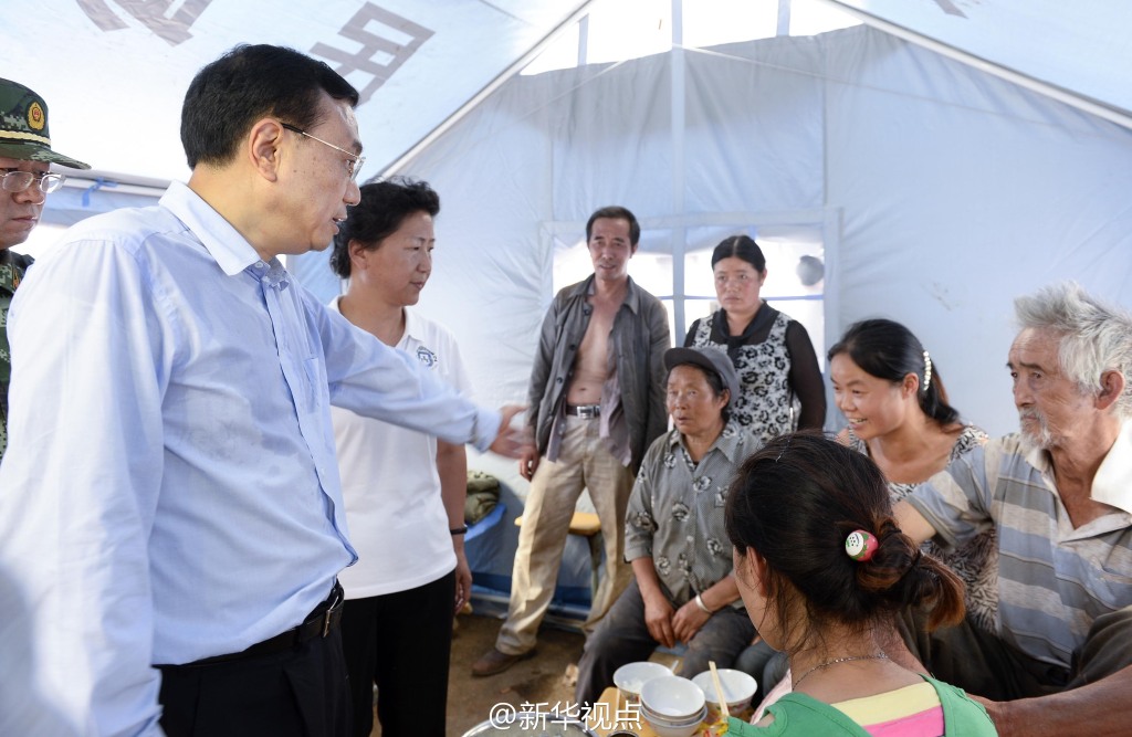 李克强到云南鲁甸灾民临时安置点看望受灾群众