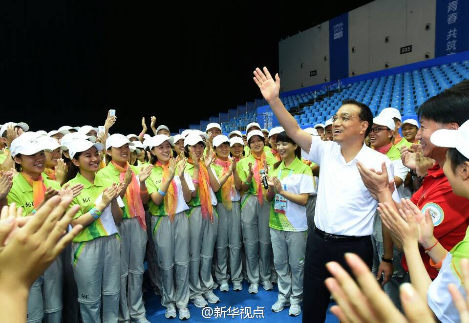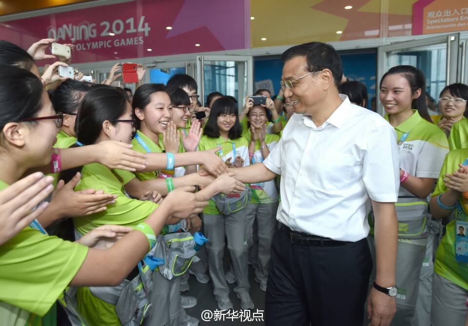 新华社北京8月28日电 据新华社“新华视点”微博报道,28日,李克强在南京看望青奥会志愿者时,称赞他们在服务工作中乐于助人、甘于奉献、敢于担当,展现了社会道德的精神力量。他说,中国的发展不仅要物质的现代化,也要追求精神的现代化。青奥会即将闭幕,圣火即将熄灭,但志愿服务精神将会永存。