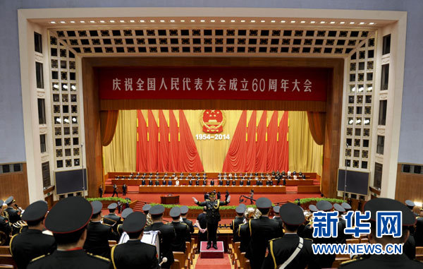 新华社北京9月5日电(记者霍小光)中共中央、全国人大常委会5日上午在人民大会堂隆重举行庆祝全国人民代表大会成立60周年大会。中共中央总书记、国家主席、中央军委主席习近平在大会上发表重要讲话。中共中央政治局常委李克强、俞正声、刘云山、王岐山、张高丽出席。中共中央政治局常委、全国人大常委会委员长张德江主持大会。
