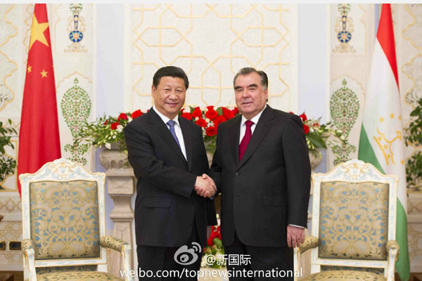 新华社北京9月13日电 据新华社“新国际”微博报道,习近平主席13日在杜尚别会见塔吉克斯坦总统拉赫蒙时说,贵国有句名言:“谁有幸做塔吉克人的客人,谁将受到主人最盛情的礼遇。”几天来,我切身感受到了塔吉克斯坦人民的热情好客。(黄敬文、马占成)