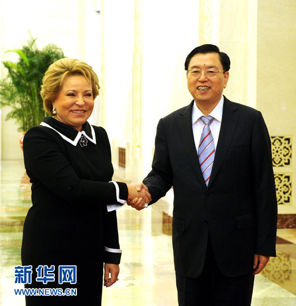 张德江与俄罗斯联邦委员会主席马特维延科举行会谈