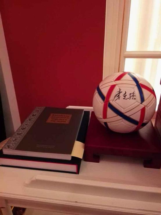 知道梅德韦杰夫喜欢踢球和摄影,克强总理专门为他准备了一份礼物:俄罗斯国旗白蓝红三色相间的足球,还有一本俄文版的《中国世界遗产画册》。小梅则把一幅自己家乡圣彼得堡街景的油画回赠给总理。